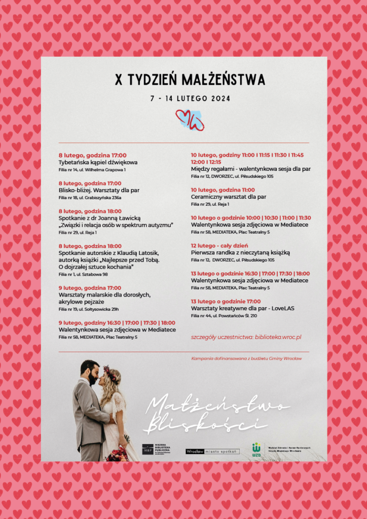 Informacje podstawowe Koordynatorzy:Katarzyna Jurkowska Wydział Zdrowia i Spraw Społecznych UM Wrocławiahttps://www.facebook.com/wydzialzdrowia.wroclaw/Maciej Kozieł Informacje :https://biblioteka.wroc.pl/ Kontakt:katarzyna.jurkowska@um.wroc.pl